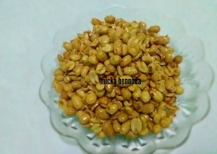 - Panaskan minyak goreng, lalu masukkan kacang. Aduk-aduk terus kacang supaya matang merata. Kecilkan api saat kacang sudah setengah matang, lalu terus aduk hingga matang dan tiriskan..